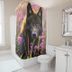 Schwarzer Wolf in rosa Blume Duschvorhang