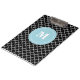 Zeigen Sie weg Ihre Art in einer Spaßweise mit diesem schwarzes und hellblaues quatrefoil modernen und trendy personalisierten Klemmbrett.