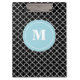 Schwarzes blaues Quatrefoil Monogramm-Klemmbrett Klemmbrett