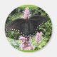 Ein ungewöhnlich entspannter Schmetterling aus schwarzem Frack, der an einem Astache-Nektar Blume genießt.