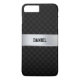 Coole und moderne schwarze Quadrat-Textur und Silbermetall. Optionales Monogramm