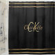 Schwarzer Hintergrund mit goldenen Streifen aus Imitaten. Personalisieren Sie Ihre Monogramm-Initialen und Ihren Vornamen und fügen Sie sie hinzu.