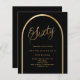 Eine elegante Einladung zum 60. Geburtstag. Ein schwarzer Hintergrund mit einem goldenen Bogen auf der Vorderseite. 1 Blatt = 1 Einladung mit Druckkante bis Kante.