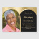 Fügen Sie Ihr eigenes Foto in vertikaler Größe hinzu. Ein bogenförmiger Rahmen aus Foto. Schwarz und Imitat goldene Hintergrundfarbe. Personalisieren und fügen Sie einen Namen und Party-Details hinzu.
