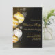 Für ein Weihnachtsfest mit Familie und Freunden. Klassischer schwarzer Hintergrund. Die Einrichtung ist mit weißen und goldfarbenen Bausteinen gestaltet. Personalisieren und fügen Sie die Details hinzu.