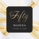 Schwarzes Goldnamensskript 50. Geburtstag Quadratischer Aufkleber