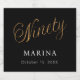 Schwarzer Hintergrund. Neunzig ist mit einem Imitat Gold-Skript geschrieben. Personalisieren und fügen Sie einen Namen und ein Datum hinzu. Weißer Text.