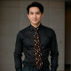 auf schwarzem hemd eine attraktion. die druckqualität ist hervorragend, jedoch nicht zentriert wie in der vorlage, gibt der krawatte aber einen noch indiviuelleren touch