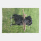 Schwarzes Labor mit zwei Sticks Foto und Name des Geschirrtuch
