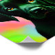 Schwarzes Labrador vor einem farbenfrohen Poster