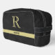 Schwarzes Leder Textur Trim Gold Monogram Name Waschbeutel