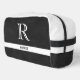 Schwarzes Leder Textur Trim White Monogram Name Waschbeutel