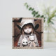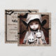 Creepy Halloween-Party Einladungen. Spooky kleines Mädchen Geist mit großen beängstigenden Augen mit super erschreckenden Puppen.