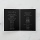 Herzlich willkommen in unserem Black Modern Script Wedding Folded Program Design, wo moderne Minimalismus auf die Kunst der Kalligraphie trifft. Diese kuratierte Ästhetik bringt einen Hauch von Raffinesse zu Ihrem besonderen Tag - mit einer Drehung von boho, lässigem Charme. Die Kombination aus einfacher Typografie und einem stilvollen Script-Schriftart verleiht Ihrer Hochzeit eine einzigartige Persönlichkeit. Dieses klassische Design bietet einen zeitlosen, polierten Look, der perfekt für Frühjahr-, Sommer-, Herbst- oder Winterhochzeiten ist. Eine schlichte Palette von schwarzen Kulissen und weißem Text schafft die perfekte neutrale Kulisse für Ihre Feier. Machen Sie Ihre Hochzeit wirklich elegant mit unserer schönen, modernen Skriptkollektion. Wie bei allen unseren Designs, wenn Sie Fragen oder besondere Wünsche haben, frag einfach.