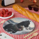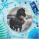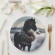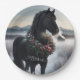 Schwarzes Pferd im Schnee mit Weihnachtskranz Pappteller