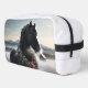 Schwarzes Pferd im Schnee mit Weihnachtskranz Waschbeutel
