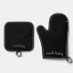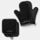 Schwarzes Skript | Stilvolle Monogram Modern Ofenhandschuh & Topflappen-Set