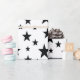Abstrakte Kunst der verschiedenen sortierten schwarzen Sterne gegen einen weißen Hintergrund.
