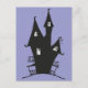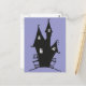 Crooked creepy Spuk Haus in einer schwarzen Silhouette auf einem lila Hintergrund.