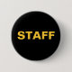 Schwarzes und Gold BESETZEN Identifikations-Abzeichen-Knopf-Schwarzhintergrund mit Personal. Große Goldbeschriftung. Gebrauch an irgendeinem Konzert, Geschäftsshow, offenes Haus, Wohltätigkeitangelegenheit, spezielles Ereignis oder Geschäftsshow, denn Ihr Personal oder Freiwilligen oder für die, die einen Informationsschreibtisch bemannen. Verfügbar in den verschiedenen Preisen, in den Größen und in den Formen und in den Hintergrundfarben. Verwenden Sie besonders anfertigen und redigieren, um Hintergrundfarbe oder Farbkasten für Schriftartfarben zu ändern. (Zazzle Anmerkung: jede weiße Linie am Unterseiten- oder Seitenrand ist eine Schattenreflexion und wird nicht Weiß. drucken)