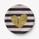 Schwarzes und rosa Streifen-Goldherz Pappteller