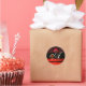 SCHWARZES UND ROTES DAMASK-MONOGRAM, RUby Runder Aufkleber