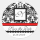SCHWARZES UND WEISSES ROTES DAMASK-MONOGRAMM, Save Runder Aufkleber