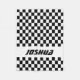 Coole Vlies-Decke mit schwarz-weißem Schachbrett-Fahne vorne. Personalisieren Sie es, indem Sie den Namen zu dem ändern, was Sie wollen. Das wäre ein großartiges Geschenk für den Rennwagenbegeisterten in Ihrem Leben. Bitte sehen Sie sich unsere anderen Schachbrett Flaggenelemente an.