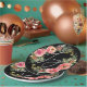 Machen Sie Ihren Urlaubstisch unvergesslich mit diesen dramatischen Tellern aus schwarzem Papier mit einem lebhaften Aquarellkranz aus rosa Rosen, festlichen Beeren, Kiefernwäldern und dem eleganten Drehbuch "Joy". Der auffallende dunkle Hintergrund hebt die Farbenpracht hervor und verleiht Weihnachtsabenden, Feierlichkeiten oder Winterfeiern eine kühne und dennoch raffinierte Touch. Diese Teller verbinden Bequemlichkeit mit festlichem Stil für eine unvergessliche Ansammlung.