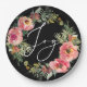 Schwarzes Weihnachten. Elegant Joy Script Floral H Pappteller