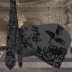 Eine schwarz blühende Hochzeitsackbindung mit einer Vintagen schwarzen, blumenreichen Weinrebe auf schwarzem Hintergrund. Die Rebgrafikgrafiken haben einen transparenten Hintergrund, sodass Sie im Design-Tool eine Farbe für den Hintergrund anstelle von schwarz auswählen können.