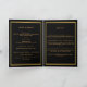 Ein elegantes 4-seitiges Programm. Ein schwarzer Hintergrund, ein goldenes Imitat und Platz für Ihr Foto auf der Vorderseite. Die Einrichtung besteht aus 3 goldenen Schmetterlingen. Personalisieren und hinzufügen von Namen, Daten und Text. Goldener Text.