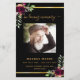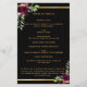 Ein elegantes zweiseitiges Programm. Ein schwarzer Hintergrund, ein goldener Rahmen in den Imitaten, bordeauxfarbene Blumen und Platz für Ihr Foto. Personalisieren und hinzufügen von Namen, Daten und Text.