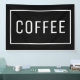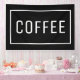 Offenes Zeichen. Einfach weiß auf schwarzem Kaffeeschild mit einem schmalen weißen Rahmen.