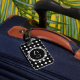Schwarzpolka-Dot-Monogramm Gepäckanhänger