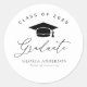 Schwarz-Weiß-Aufkleber mit Abschluss. Personalisieren Sie Ihre neue Adresse und Ihren neuen Namen.