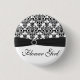 Schwarzweiss-Damast-Blumen-Mädchen-Button Button