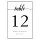 Einfache und schicke Tischnummern in Schwarz und Weiß bilden eine elegante Note an Ihrem Hochzeitsempfang. Personalisieren Sie mit jeder Tischnummer, Ihren Namen und Hochzeitsdatum in klassischer schwarzer Schrift mit Akzenten der Kalligraphie. Design wiederholt sich auf der Rückseite. Koordiniert mit unserer Ampersand Monogram Hochzeitssuite.