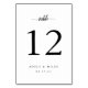 Einfache und schicke Tischnummern in Schwarz und Weiß bilden eine elegante Note an Ihrem Hochzeitsempfang. Personalisieren Sie mit jeder Tischnummer, Ihren Namen und Hochzeitsdatum in klassischer schwarzer Schrift mit Akzenten der Kalligraphie. Design wiederholt sich auf der Rückseite. Koordiniert mit unserer Ampersand Monogram Hochzeitssuite.
