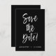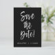 Schwarz-Weiß-Schriftzeichen-Save the Date-Karte. Der Text dieses handgeschriebenen Pinselskripts kann mit Namen und Datum aktualisiert und angepasst werden.