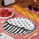 Schwarzweiss-Tupfen-gestreifter Pappteller