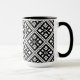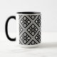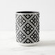 Tasse mit dem Nordic, der inspiriertes Schwarzweiss-Schneeflockeweihnachtsmuster strickt.