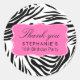 Schwarz-Weiß Zebramuster danke Ihnen Aufkleber zum Geburtstag. Eine heiß rosa Form in der Mitte, wo Sie Ihren Text einstellen können.