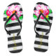 Schwarz & Weiß Streifen Flip Flops mit Aquarell rosa Peony und goldenes individuelles Motto ("Carpe Diem", das Sie mit was Sie wollen ersetzen können).