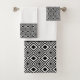 Schwarz-Weiß-Set mit Diamant-gemusterten Badezimmern.