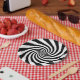 Diese Teller sind mit einem abstrakten, individuell anpassbaren, Süßwarenmuster versehen. Ändern Sie die schwarze Hintergrundfarbe in eine Farbe, die zu Ihrer Geburtstagsfeier passt. Wenn Sie eine Textnachricht hinzufügen möchten, möchten Sie vielleicht damit beginnen, eine Kreisform hinzuzufügen, die als Basis im System verfügbar ist.