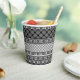 Schwarzweißpatchwork mit Spitze Pappbecher