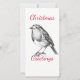 Hier ist ein niedliches Schwarz-Weiß-Rotkehlchen mit Wörtern in einem Weihnachtsrot. Es heißt "Weihnachts-Gruß" und auf der Rückseite steht "und ein glückliches neues Jahr" Es gibt noch einen Platz für Ihre eigene Botschaft oder Einladung. Eine einfache, saubere, knusprige Karte für Sie bereit.