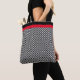 Schwarz-Weiß Schachmuster mit rotem Band Tote Bag.