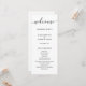 Eine minimalistische und trendige Hochzeit. Unsere minimalistische und trendige Hochzeitskarte in Schwarz und Weiß. Die zarte schwarze Kalligraphie fügt dieser weißen Programmkarte eine Touch von Eleganz hinzu, und ist somit die ideale Wahl für eine moderne Hochzeitsfeier. Bitte klicken Sie auf den Link "Weitere Anpassung" und verwenden Sie unser Design-Tool, um diese Vorlage zu ändern. Alle Textstile, Farben, Größen können nach Ihren Wünschen angepasst werden.
